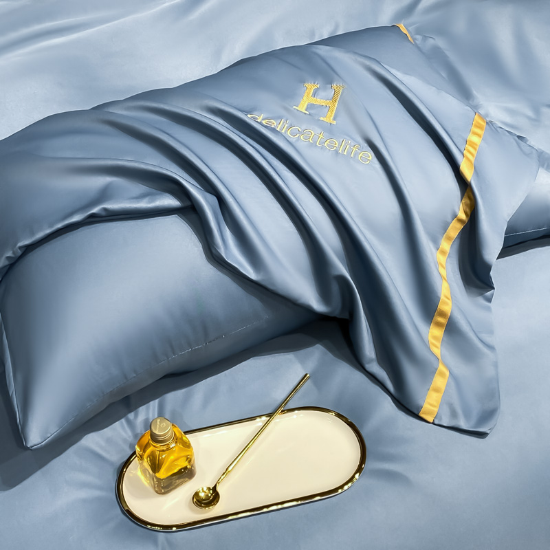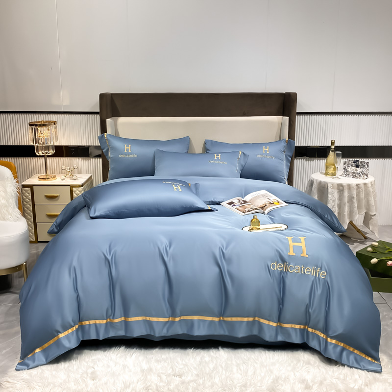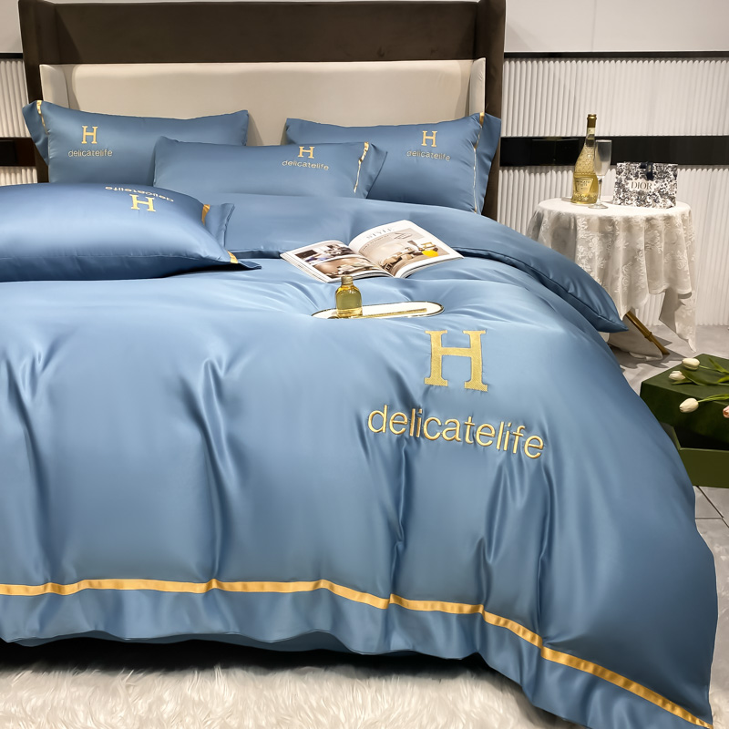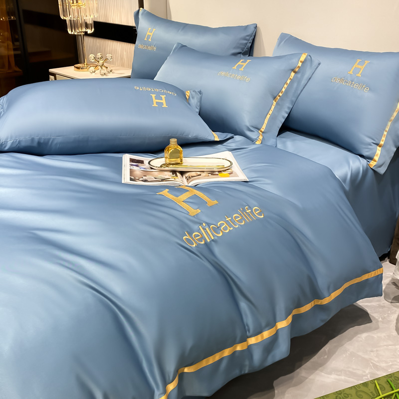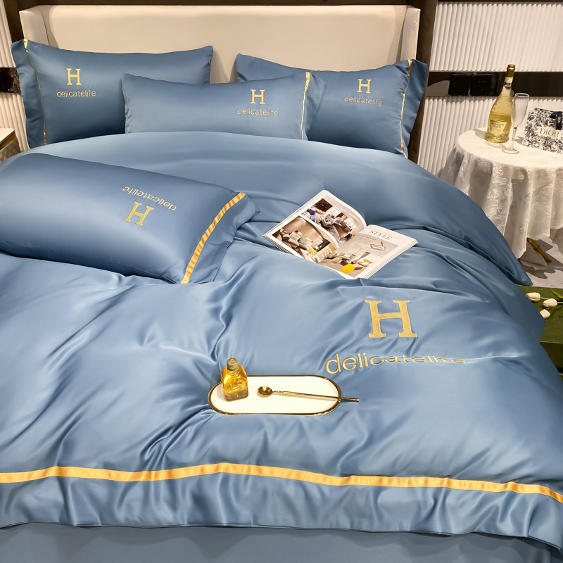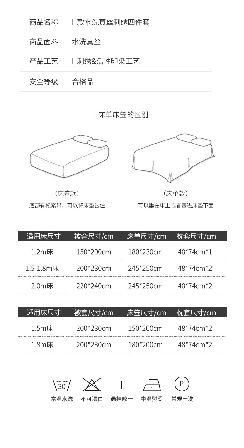 【纯棉纯色精美刺绣四件套】柔软亲肤裸睡首选活性印染水洗机洗透气