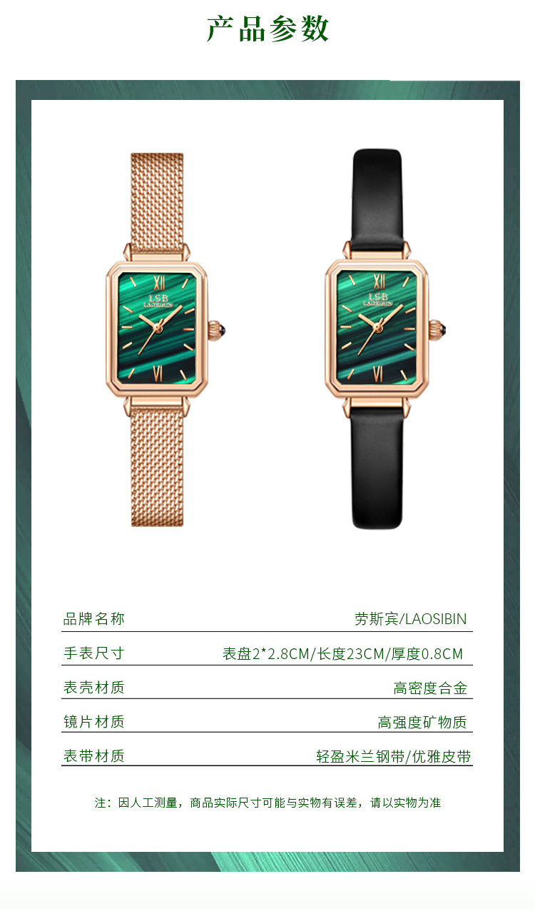 【轻奢腕表】复古孔雀绿小方盘女士手表个性方形时尚女士潮流