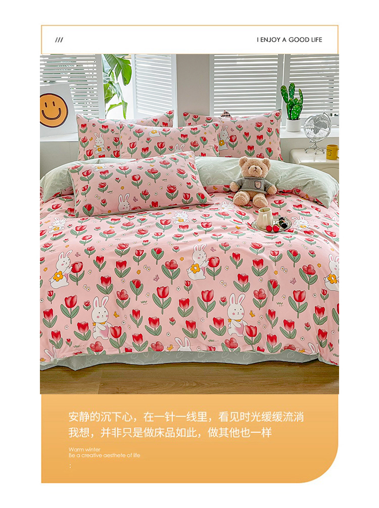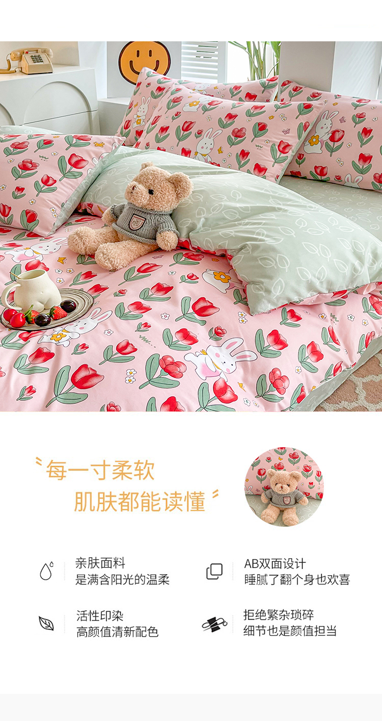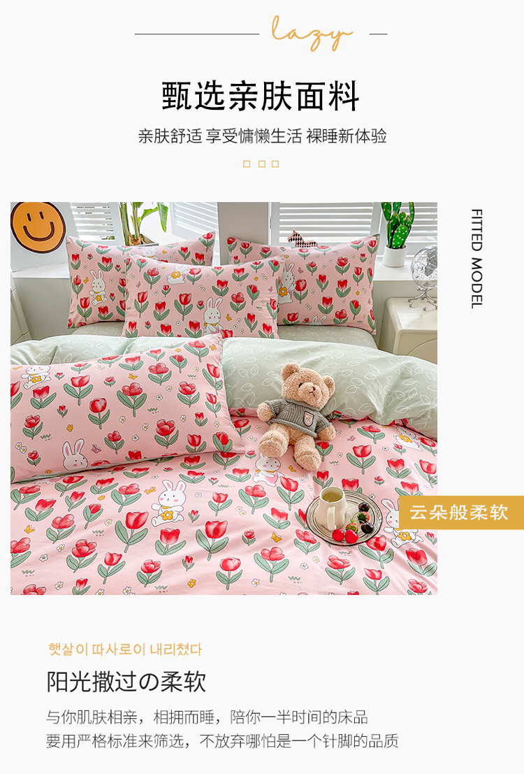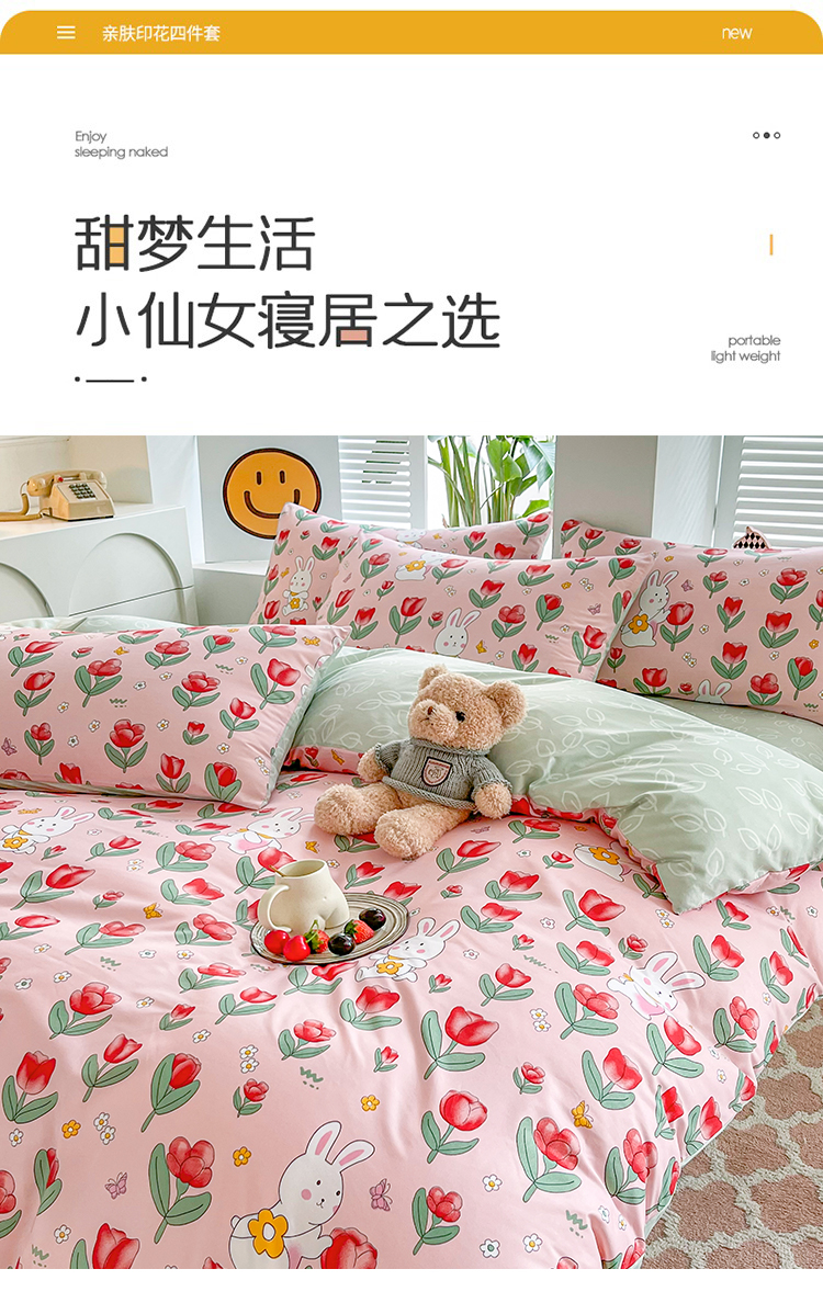【水洗棉亲肤四件套】糖果配色AB双版设计清新印花活性印染工艺